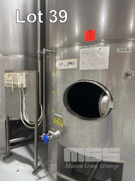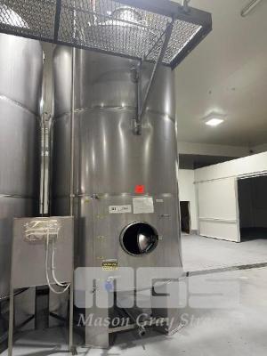 STAINLESS STEEL UPRIGHT TANK, 15,000 LITRE CONE BOTTOM ON LEGS LEVEL GAUGE TO 5,000 LITRE BOTTOM & SIDE OUTLET VALVES INCLUDES CIG REGULATOR, FITTING & LIFTING LUGS