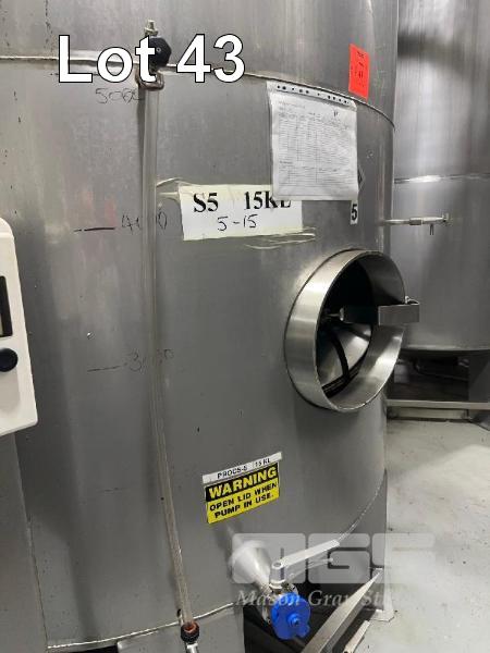 STAINLESS STEEL UPRIGHT TANK, 15,000 LITRE CONE BOTTOM ON LEGS LEVEL GAUGE TO 5,000 LITRE BOTTOM & SIDE OUTLET VALVES INCLUDES CIG REGULATOR, FITTING & LIFTING LUGS DIGITAL TEMP READOUTS & SENSORS