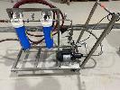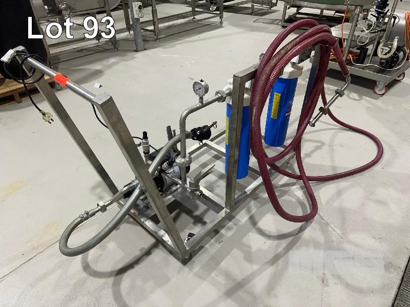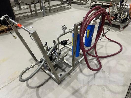 TRANSFER STATION, DUAL CARTRIDGE FILTERS, MONO 1" PRESSURE PUMP, 240V & HOSES ON STAINLESS STEEL TROLLEY