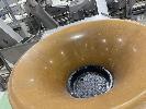 FIBREGLASS BRINE TANK, 1800mm DIAMETER APPROX 1400mm (H) APPROX ON FORK POCKETED SKID BASE BOLTED LID WITH STRAINING TOP FILLER INSERTS STAINLESS STEEL LADDER ACCESS