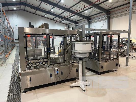 SMALL BOTTLE, BOTTLING FILLING LINE TO INCLUDE TIRELLO 3 HEAD AUTO FILLER MOD: MONOBLOC00 S/NO: M1036 DOM: 2005 WITH SARG AUTO CAPPER WITH SPARE DISPENER HEAD CONVEYORED TO TIRELLO AUTO LABELLER MOD: DELTA S/NO: M1037 DOM: 2005 BOTH WITH ALLEN BRADLEY PANELVIEW 550 CONTROLS & PVC TOP CIRCULAR DISPATCH TABLE & 2 x RACKS OF SAMLL BOTTLE TOOLING