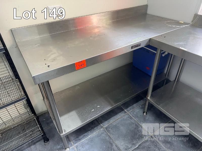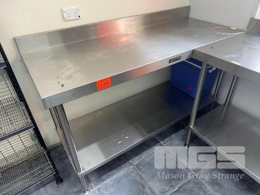 STAINLESS STEEL BENCH, 1500 x 600mm, 2 TIER WITH SPLASHBACK