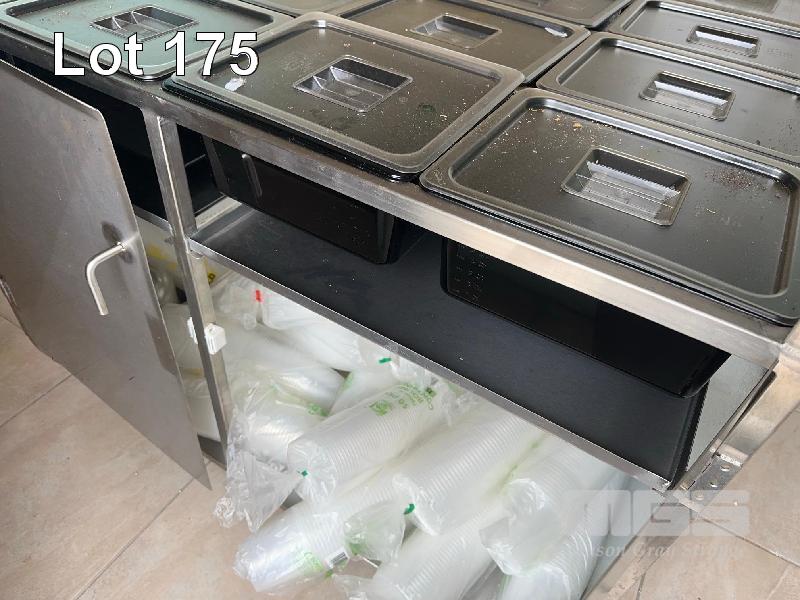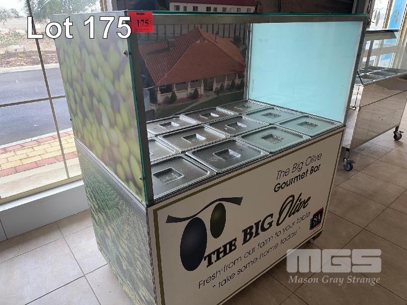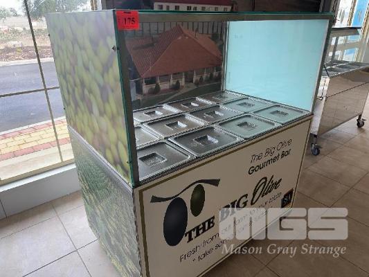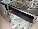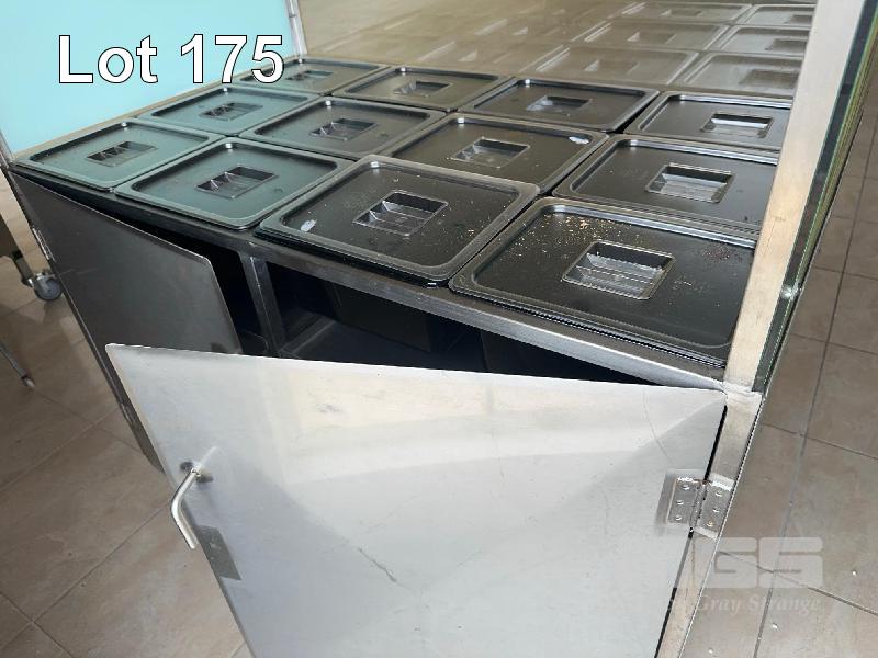 STAINLESS STEEL SERVERY, MOBILE 12 x PVC COVERED TRAYS GLASS SNEEZE BAR