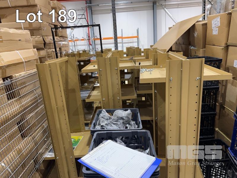 24 x 5 TIER MOBILE DISPLAY SHELF UNITS, NEW IN BOXES! 520 x 520 x 1400mm (H) PLASTIC CASTORS WITH SIGNAGE SLOTS, BEIGE POWDER COAT 1 x PALLET