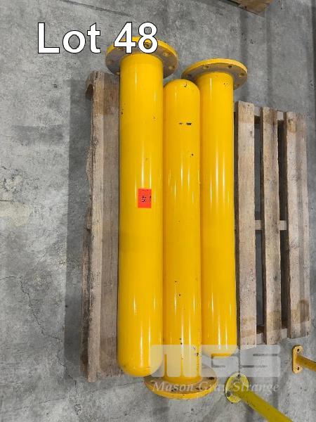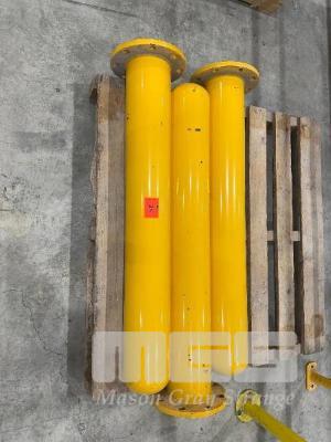 3 x YELLOW BOLLARDS, HEAVY DUTY, 1200mm, 170mm PIPE & 8 BOLT FLANGES