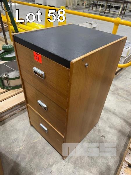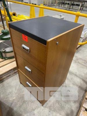 OLD SCHOOL FILING CABINET, TIMBER, 3 DRAWER WITH VINYL TOP & 2 DOOR TIMBER STOCK CUPBOARD