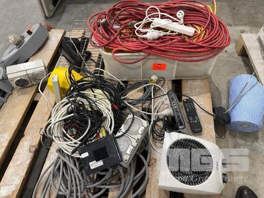 ASSORTED EXTENSION LEADS, 240V, PEDAL CONTROL SWITCH, POWER BOARDS & TV AERIALS