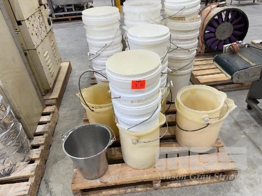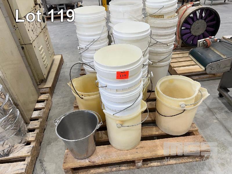 LARGE QUANTITY PVC BUCKETS & 1 x ALLOY