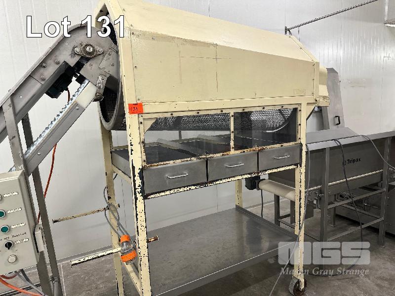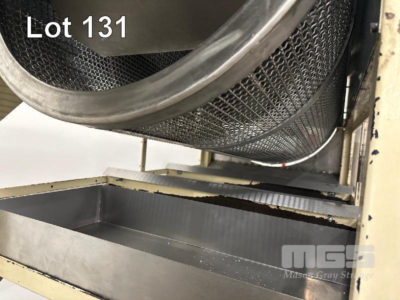 TROMMEL SIFT ROTARY TABLE, 1300 x 600mm 14mm STAINLESS TELE MESH-SIZING WITH 3 x STAINLESS STEEL BIN BASES MOBILE, 415V