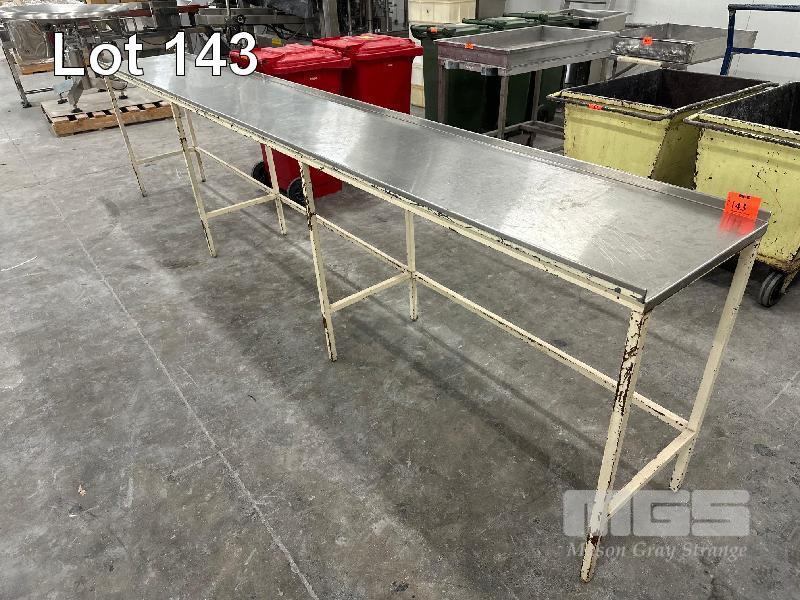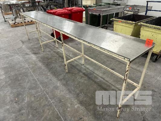 STAINLESS STEEL TOP SORTING BENCH 3700 x 490mm MILD STEEL TUBE BASE