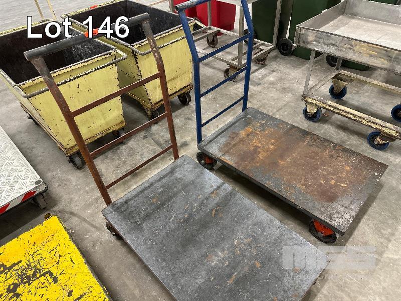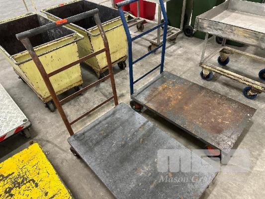 2 x STEEL PLATFORM TROLLEYS, 1050mm