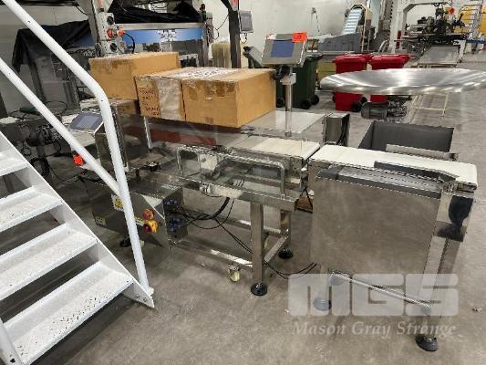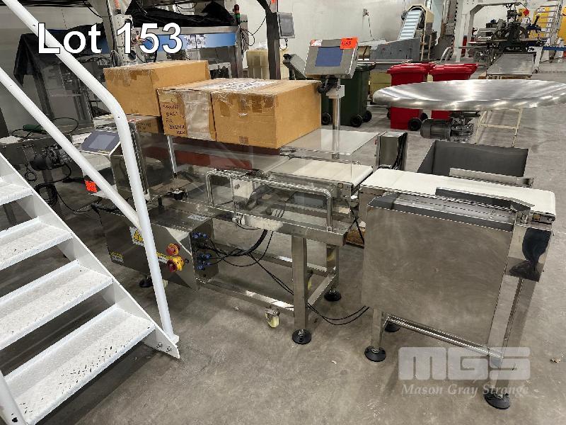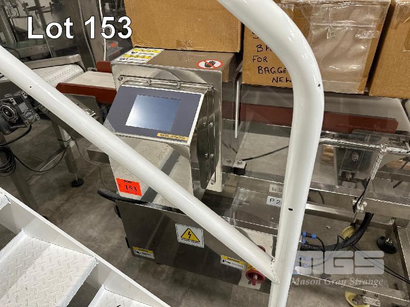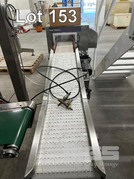 METAL DETECTION CONVEYOR SYSTEM COMPRISING INFEED FLAT BELT PVC CONVEYOR 1200 x 300mm, 240V METAL DETECTION UNIT OVER BELT CONVEYOR, 1300 x 230mm & OUTFEED SMALL CONVEYOR, 650 x 230mm WITH OFFSET BINS ALL STAINLESS STEEL CASED 240V & 415V POWER INVERTER