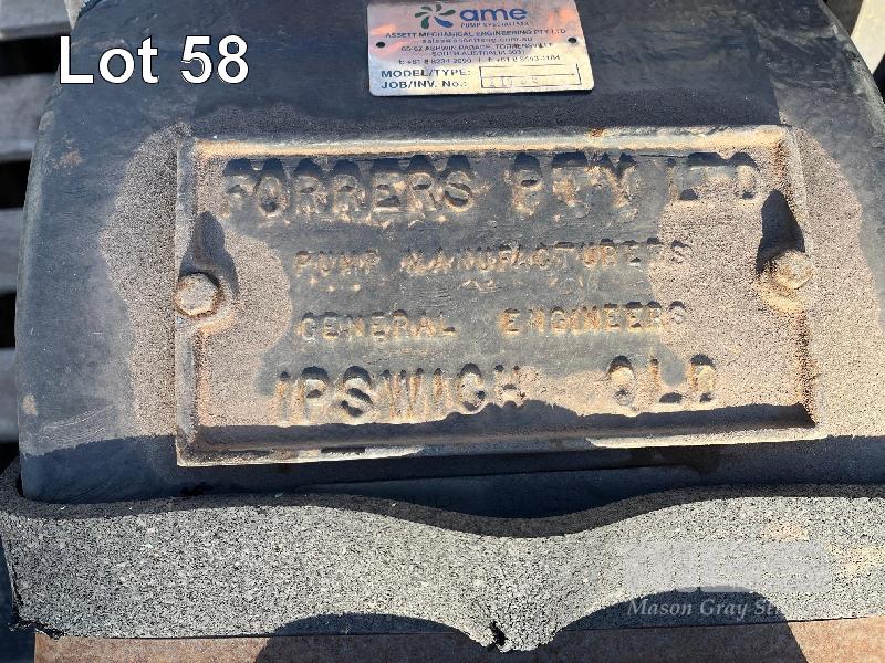 "FORRERS" PUMP, COMPLETE WITH DRIVE MOTOR, 6" x 6" OUTLET