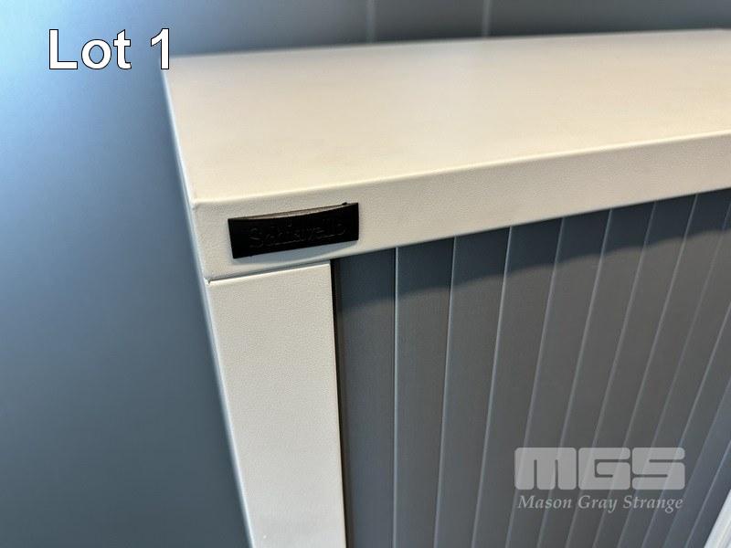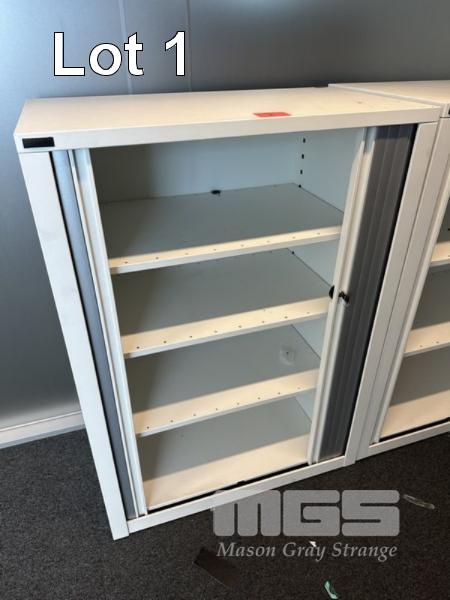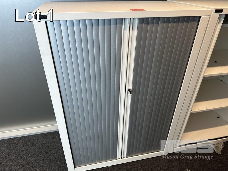 STEEL CABINET, SCHIAVELLO, TAMBOUR DOOR, WHITE, 125 x 90cm WITH KEY