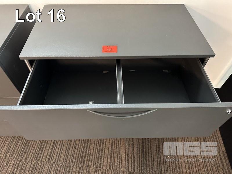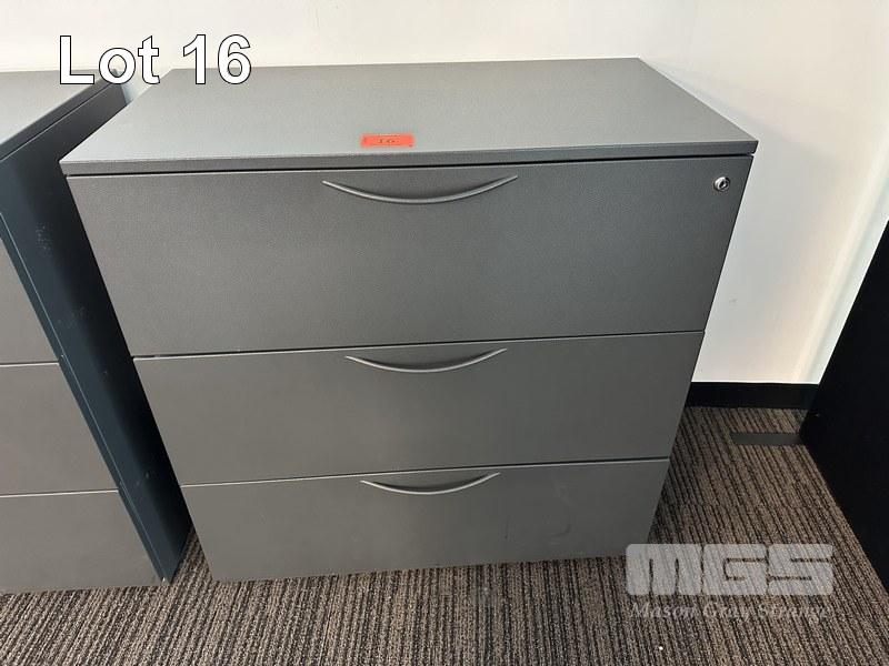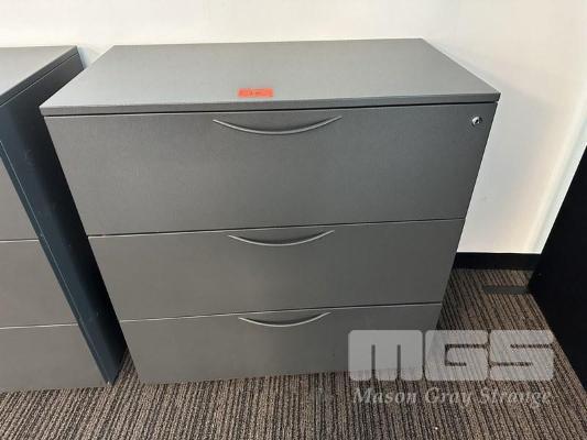 LATERAL FILING CABINET, GREY STEEL, 3 DRAWER, 93 x 90cm (LOCATED LEVEL 1)