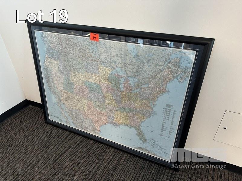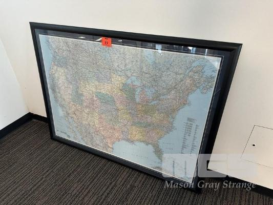 FRAMED USA MAP, 140 x 110cm (LOCATED LEVEL 1)