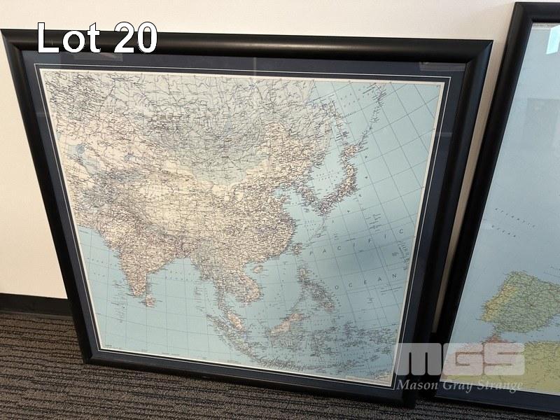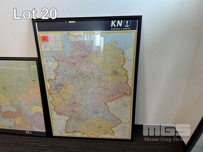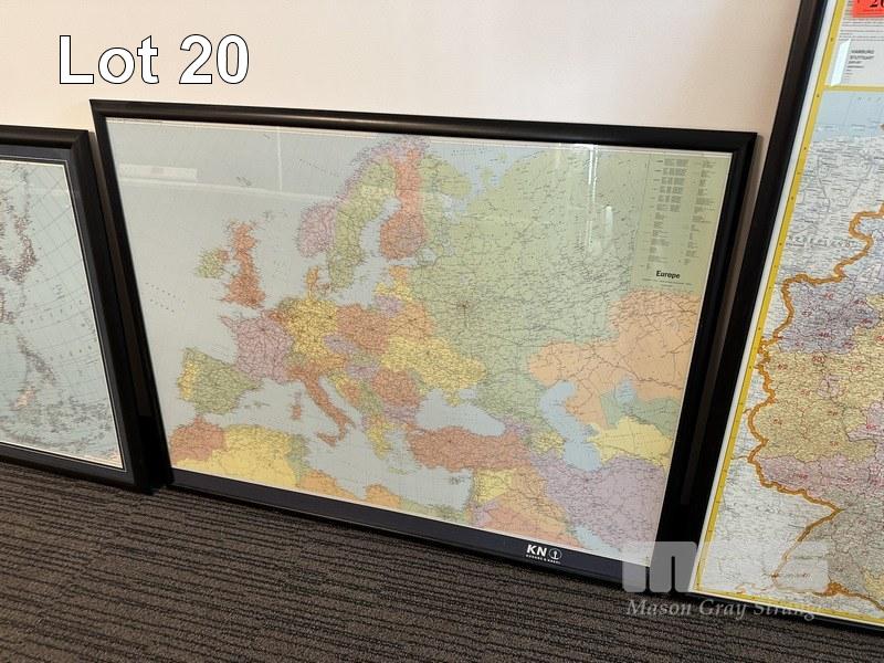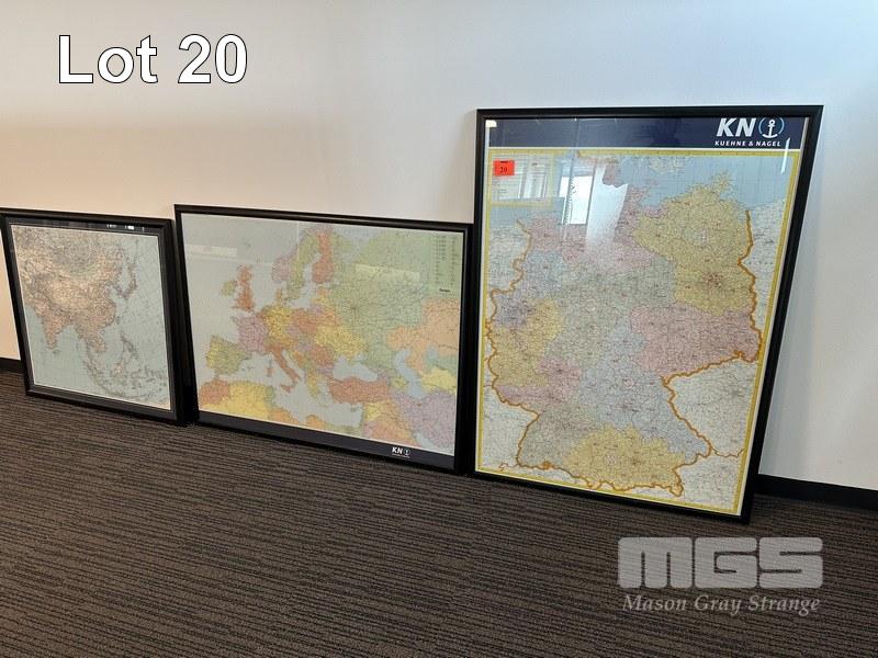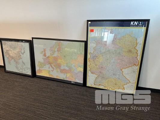 3 x FRAMED MAPS, GERMANY 100 x 140cm, EUROPE 105 x 130cm, CHINA 105 x 100cm, (LOCATED LEVEL 1)