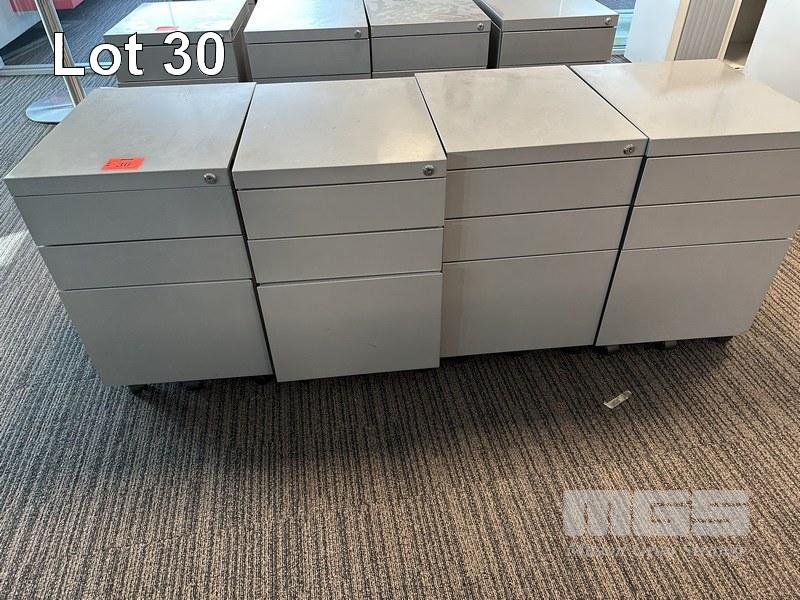 4 x GREY STEEL UNDERDESK MOBILES (NO KEYS) (LOCATED LEVEL 1)