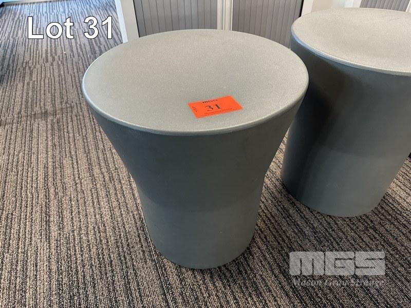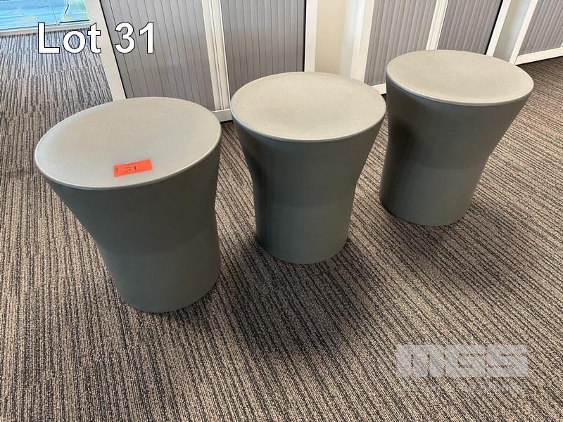 3 x GREY PLASTIC STOOLS, 45 x 38cm (LOCATED LEVEL 1)