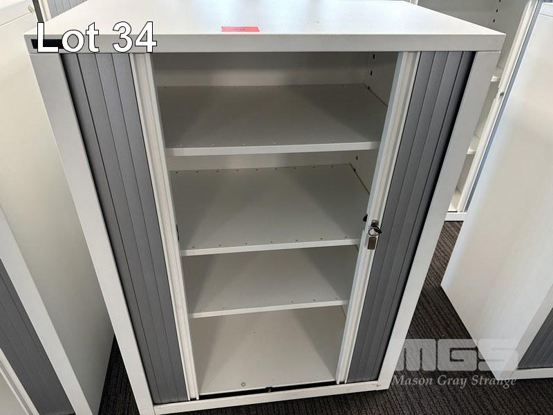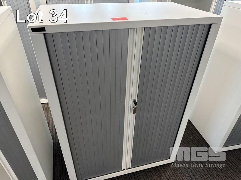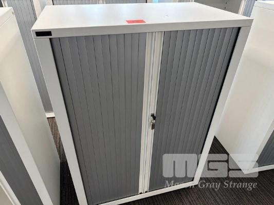 STEEL CABINET, SCHIAVELLO, TAMBOUR DOOR, WHITE, 125 x 90cm WITH KEY (LOCATED LEVEL 1)