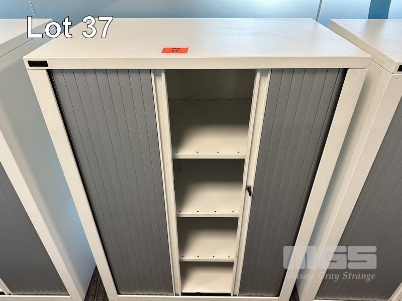 STEEL CABINET, SCHIAVELLO, TAMBOUR DOOR, WHITE, 125 x 90cm WITH KEY (LOCATED LEVEL 1)
