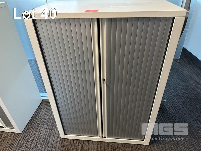 STEEL CABINET, SCHIAVELLO, TAMBOUR DOOR, WHITE, 125 x 90cm WITH KEY (LOCATED LEVEL 1)