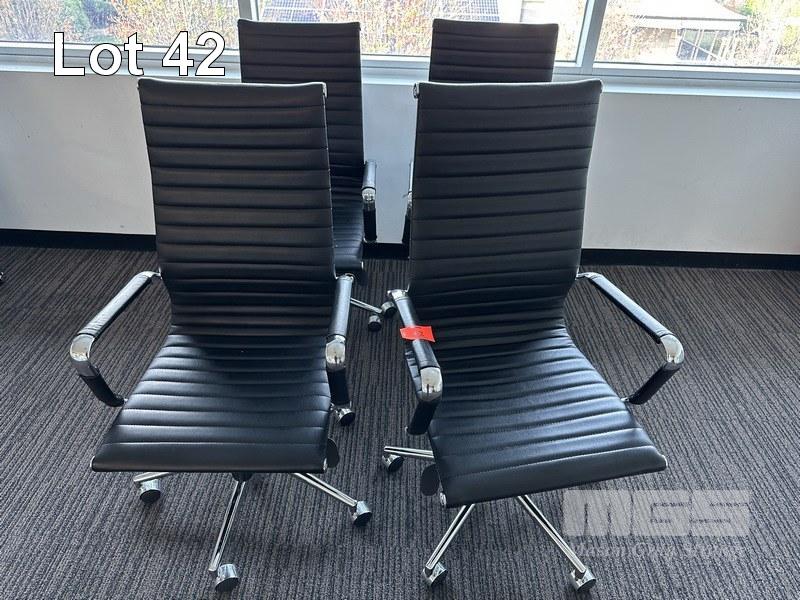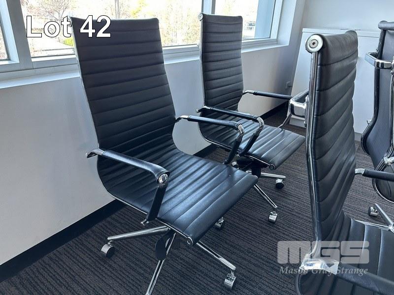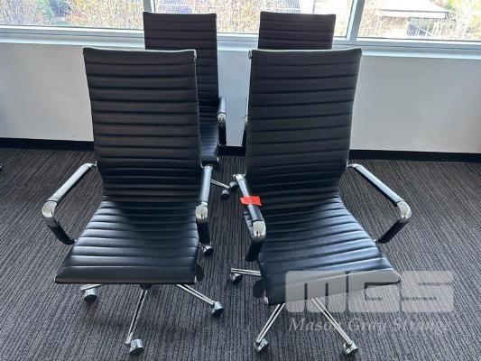 4 x OFFICE ARM CHAIRS, HIGH BACK, CHROME FRAME (LOCATED LEVEL 1)