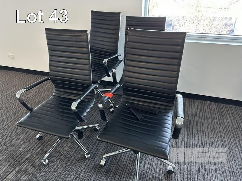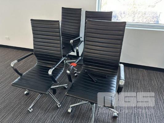4 x OFFICE ARM CHAIRS, HIGH BACK, CHROME FRAME (LOCATED LEVEL 1)