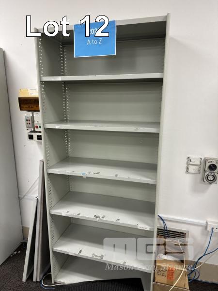 2 x HIRACK STEEL SHELVING UNITS, EACH 217 x 92cm