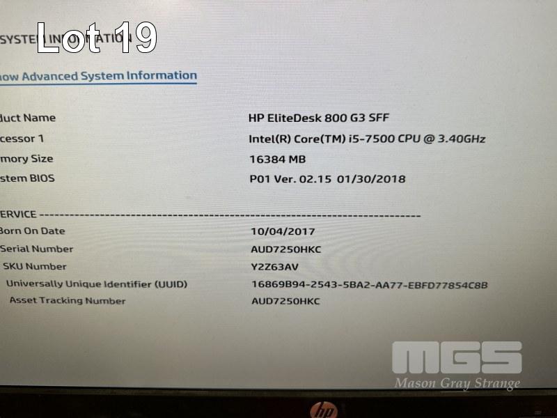 COMPUTER, HP ELITEDESK 800 G3 SFF, CORE i5 7500 @ 3.4GHz, 16GB RAM, 1TB SATA HDD, DVD-RW, WINDOWS 10 PRO INSTALLED, KEYBOARD & MOUSE WITH HP P222va 21.5" LCD MONITOR