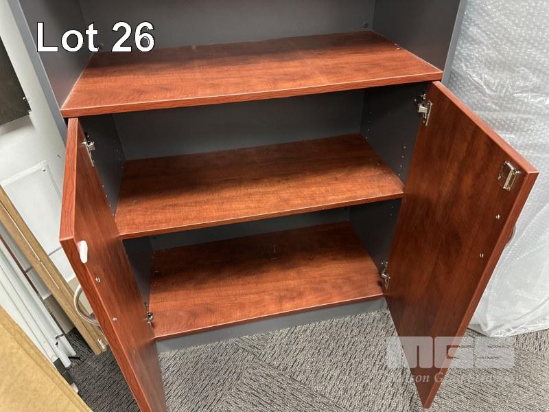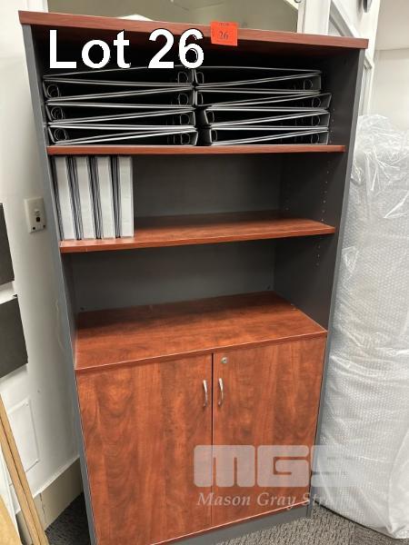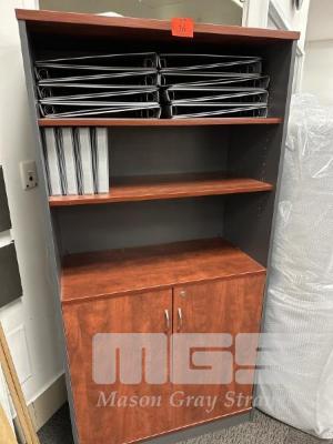 BOOKCASE / 2 DOOR CUPBOARD, JARRAH / STORM LAMINATE, 180 x 90cm