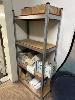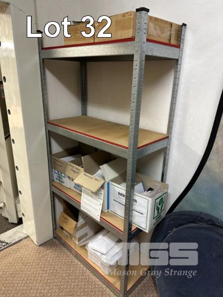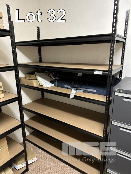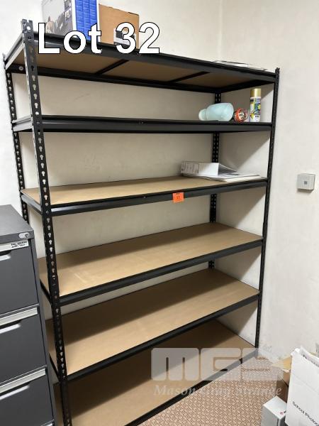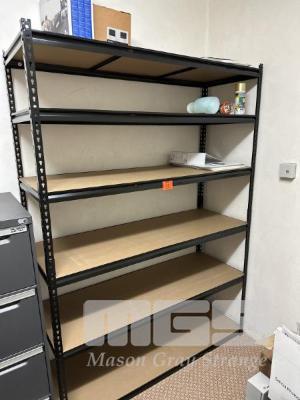 3 x SHELF STORAGE UNITS, STEEL FRAME, MDF SHELVES, 208 x 150cm 1 x SHELF STORAGE UNIT, GALV FRAME, MDF SHELVES, 180 x 90cm