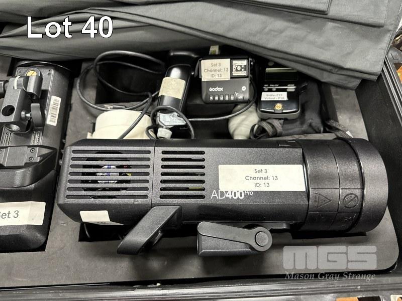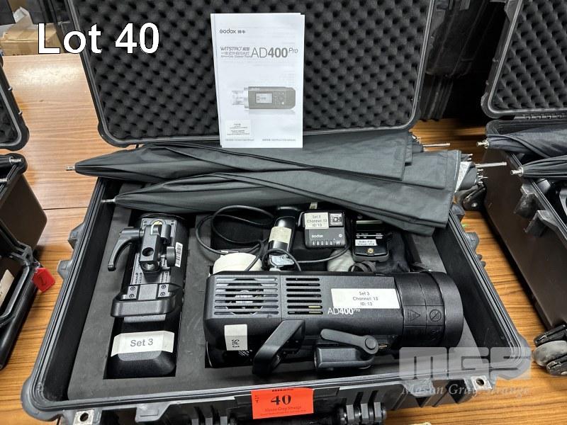 2 x GODOX AD400 PRO ALL-IN-ONE OUTDOOR FLASH UNITS WITH AC400 POWER ADAPTERS, GODOX X2T-N TRIGGER, 3 x GODOX WB400PA BATTERIES WITH CHARGERS, AUTO METER VF LIGHT METER, USB BARCODE SCANNER, 2 x UMBRELLAS, 2 x GODOX FLASH CASE BAGS, TOOLPRO SAFE CASE TROLLEY & 2 x TRIPODS IN CARRY BAGS