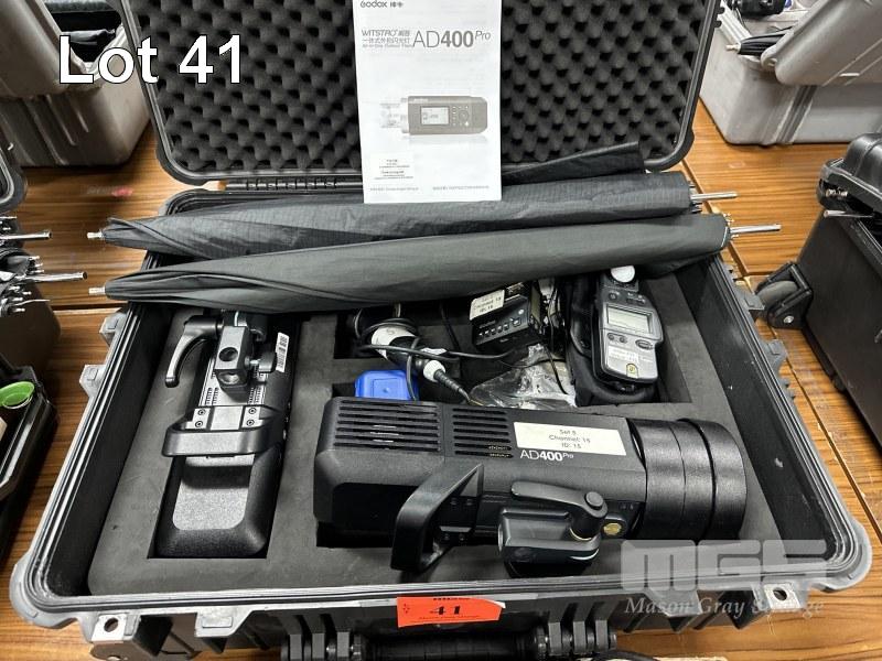 2 x GODOX AD400 PRO ALL-IN-ONE OUTDOOR FLASH UNITS WITH AC400 POWER ADAPTERS, GODOX X2T-N TRIGGER, 3 x GODOX WB400PA BATTERIES WITH CHARGERS, AUTO METER VF LIGHT METER, USB BARCODE SCANNER, 2 x UMBRELLAS, 2 x GODOX FLASH CASE BAGS, TOOLPRO SAFE CASE TROLLEY & 2 x TRIPODS IN CARRY BAGS