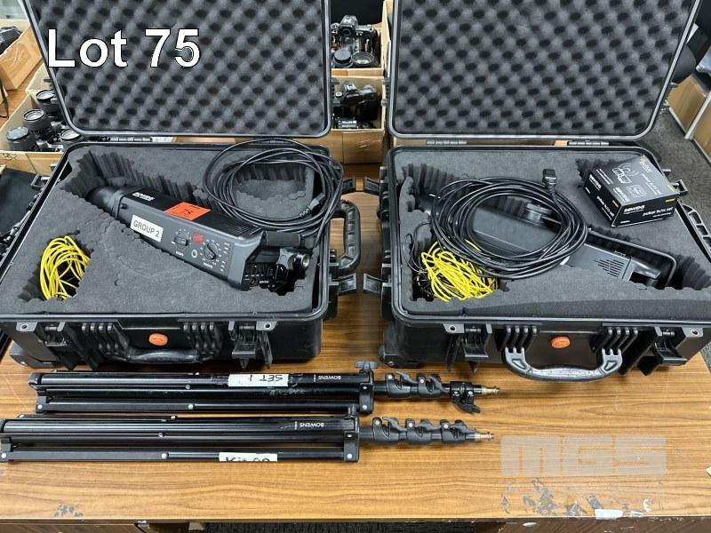 2 x BOWENS GEMINI GM1500PRO MONOLIGHTS, 2 x UMBRELLAS, 2 x TRIPODS & 2 x SAFE CASES