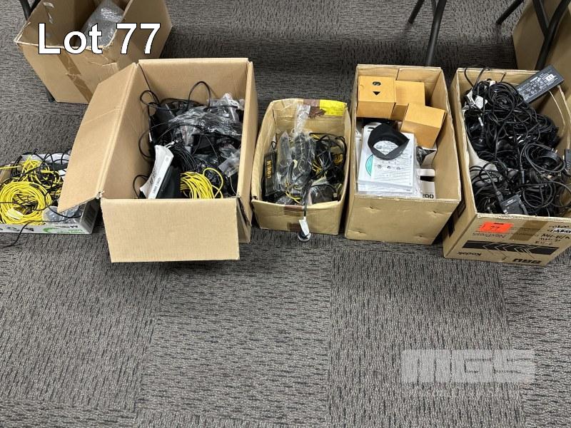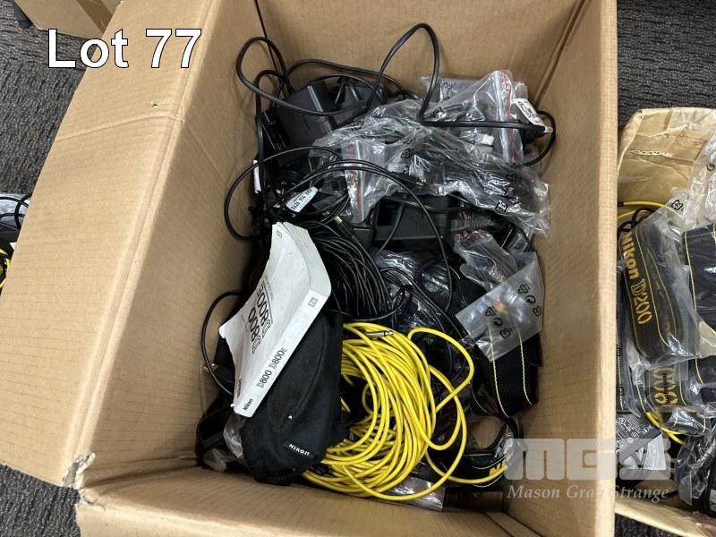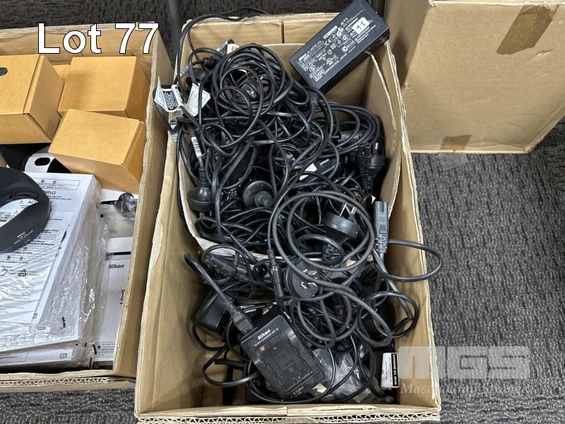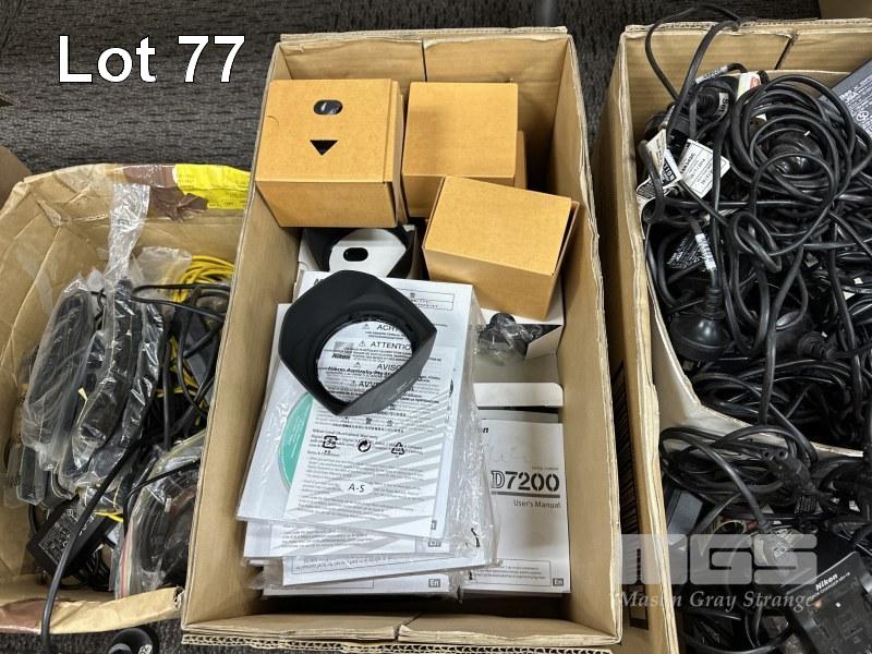 5 x BOXES ASST NIKON CAMERA ACCESSORIES, CABLES, CHARGERS, MANUALS, LENS HOODS, AS-15 SYNC ADAPTERS ETC