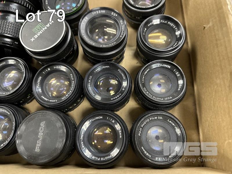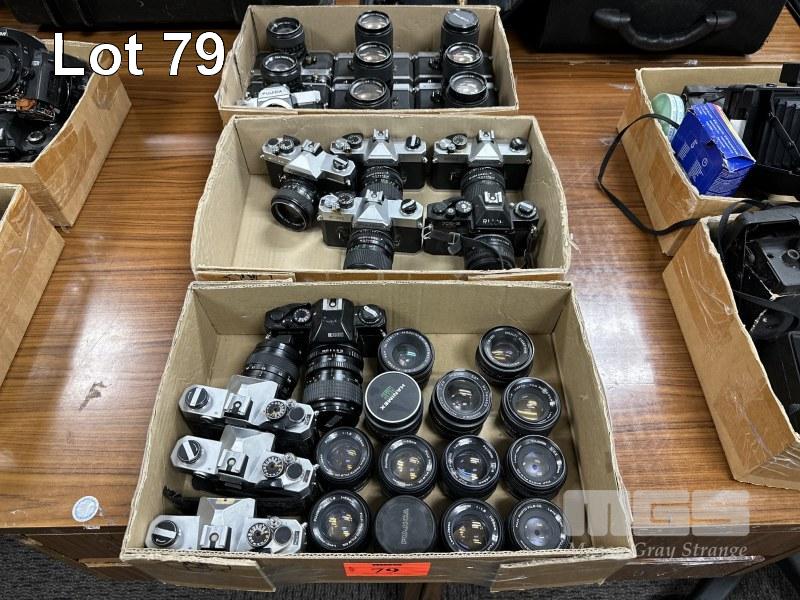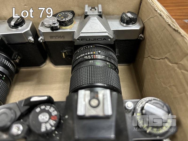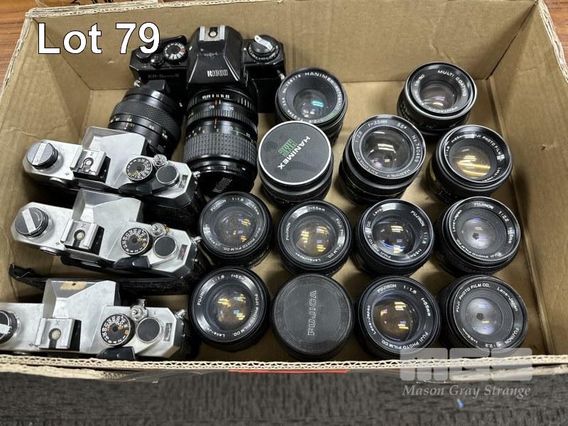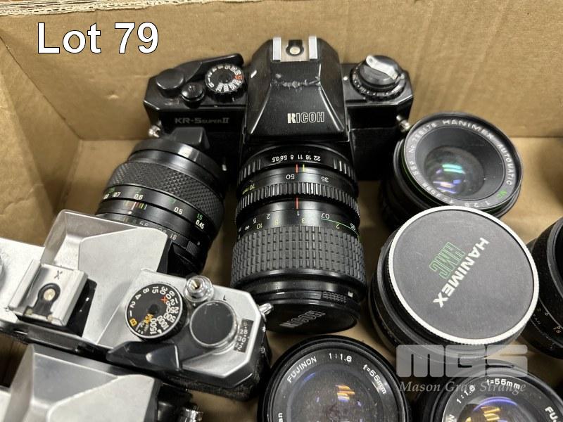 QTY FILM CAMERAS, RICOH KR-5 SUPER II, FUJICA STX-1, FUJICA ST705W, HANIMEX & FUJINON LENSES