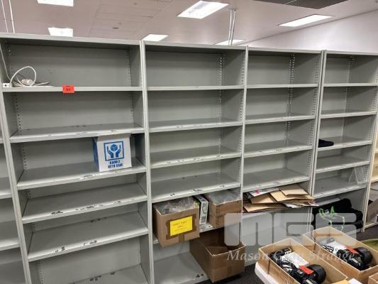 4 x HIRACK STEEL SHELVING UNITS, EACH 217 x 92cm