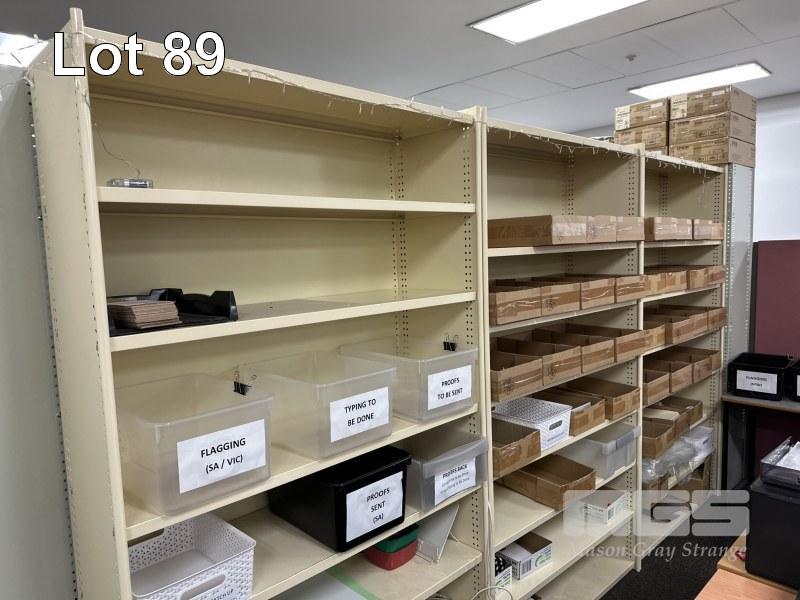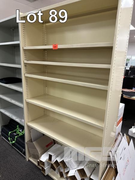 4 x CREAM STEEL SHELVING UNITS, EACH 217 x 122cm