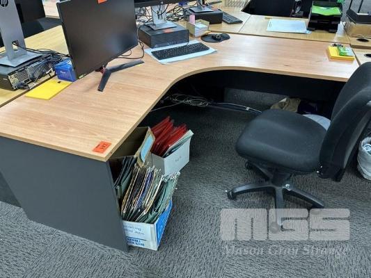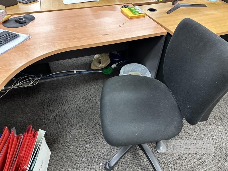 CORNER OFFICE DESK, BEECH / STORM LAMINATE, 180 x 180 x 70cm WITH CHAIR