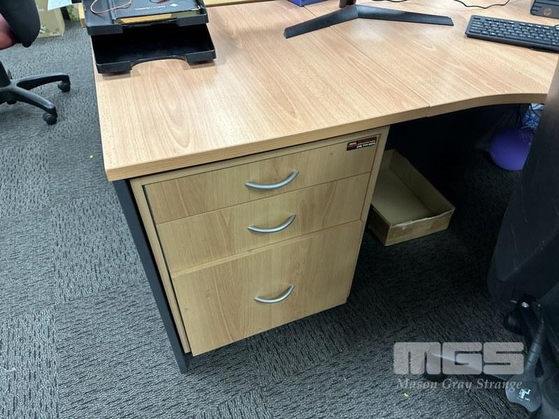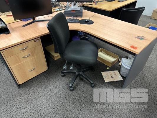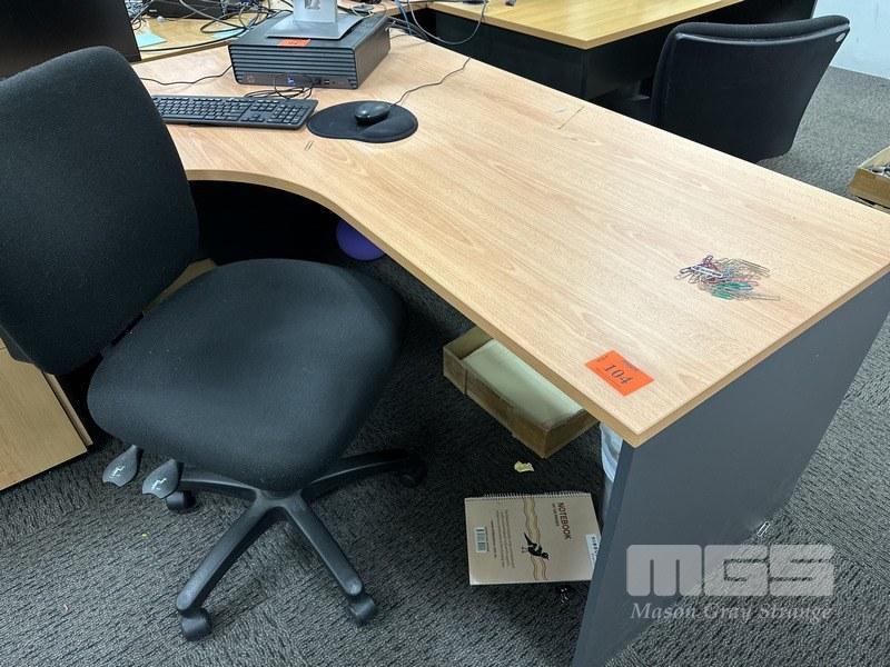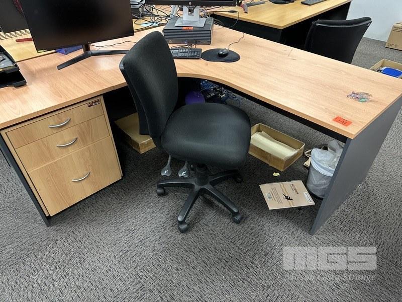 CORNER OFFICE DESK, BEECH / STORM LAMINATE, 180 x 180 x 70cm WITH CHAIR