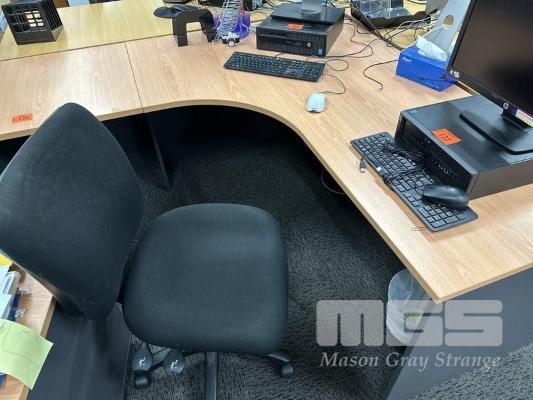 CORNER OFFICE DESK, BEECH / STORM LAMINATE, 180 x 180 x 70cm WITH CHAIR