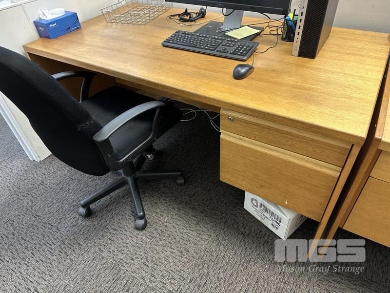 2 x OFFICE DESKS, TIMBER, EACH 170 x 90cm & 2 x CHAIRS