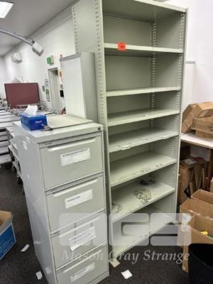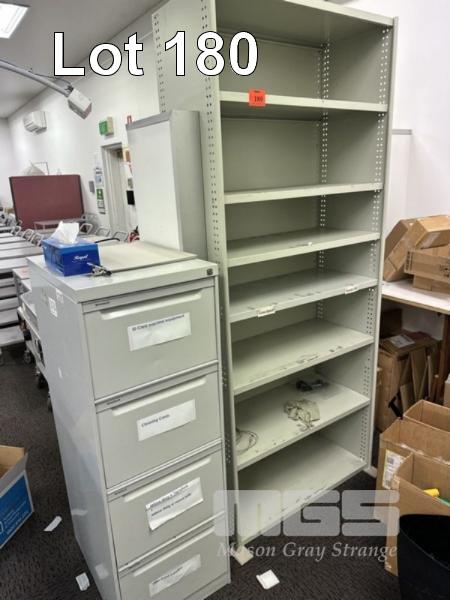 1 x HIRACK STEEL SHELVING UNIT, 217 x 92cm & BROWNBUILT 4 DRAWER FILING CABINET