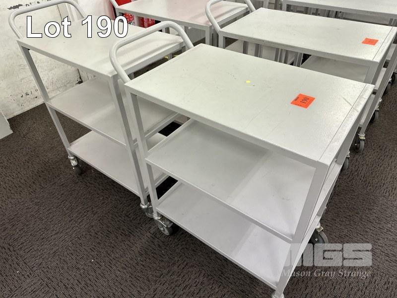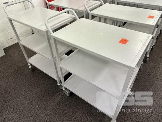 2 x STEEL STOCK TROLLIES, 3 TIER, 70 x 45cm