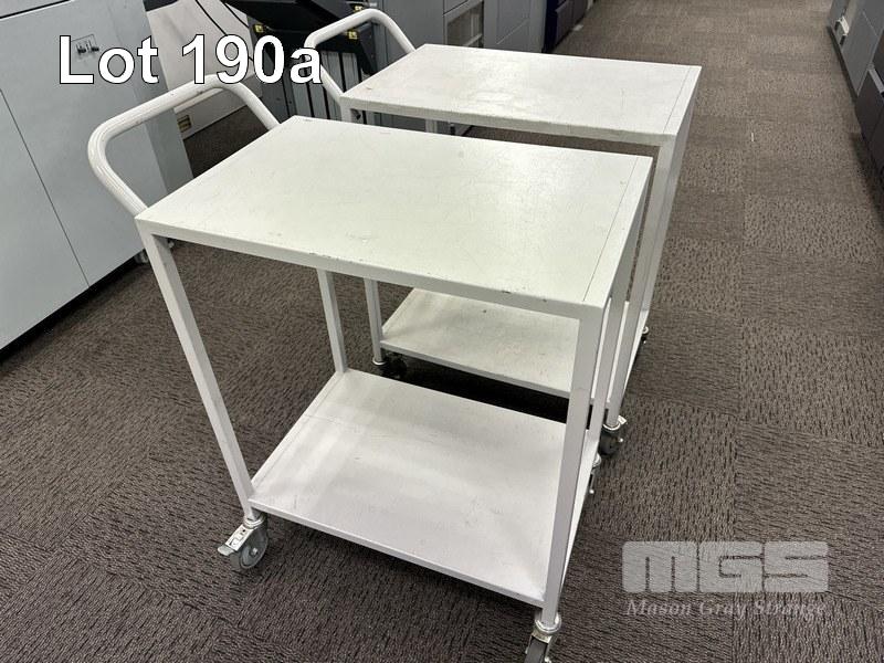 2 x STEEL STOCK TROLLIES, 3 TIER, 70 x 45cm