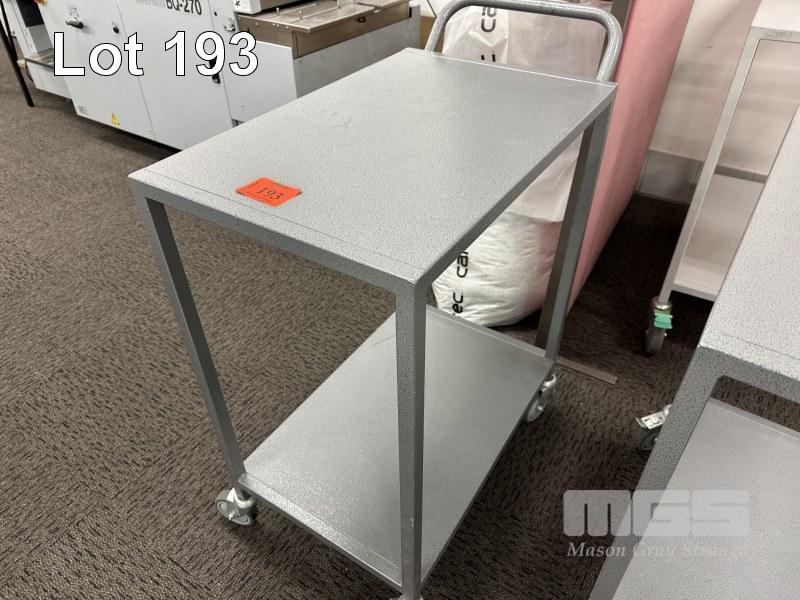 GREY STEEL STOCK TROLLEY, 2 TIER, 70 x 45cm