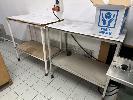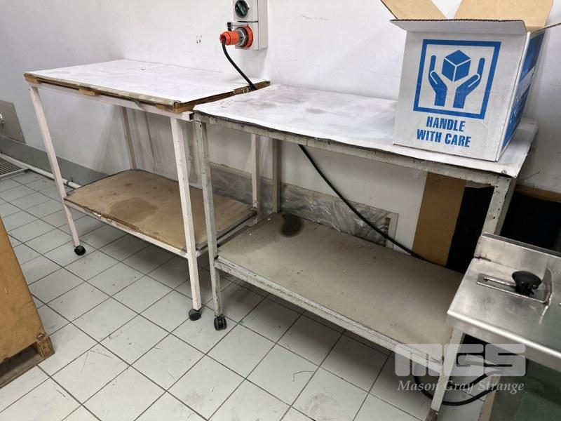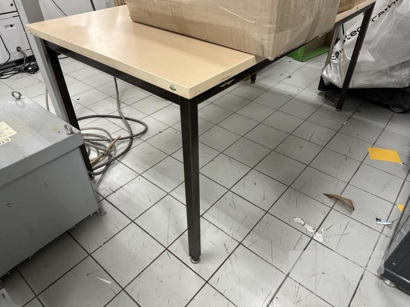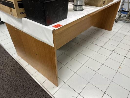OFFICE DESK, TIMBER, 3 x ASST MOBILE BENCHES & TABLE