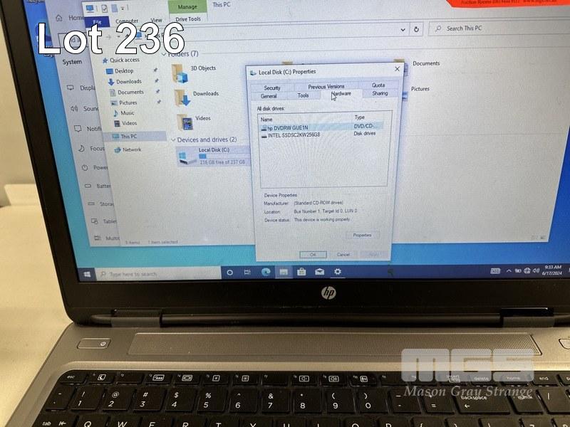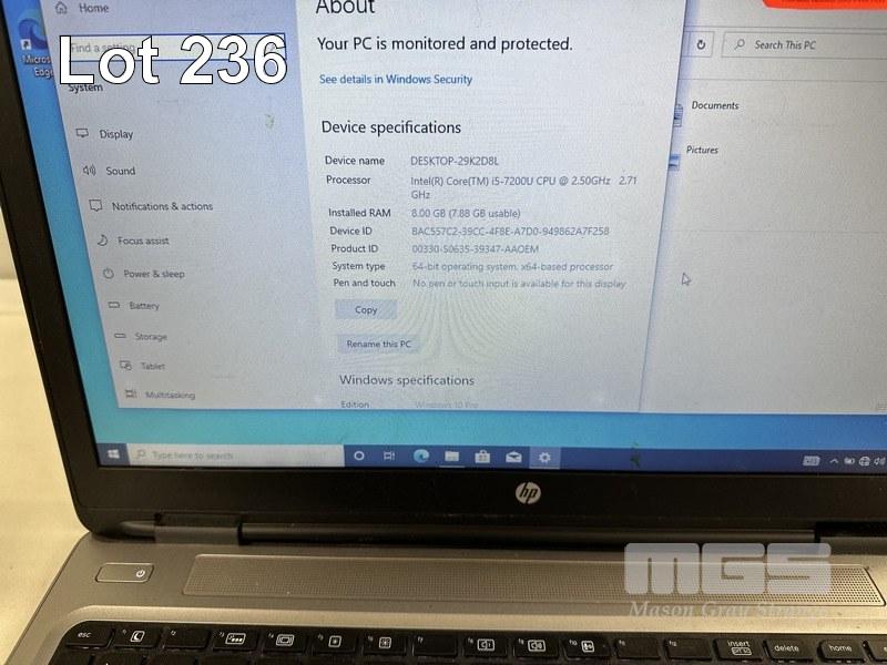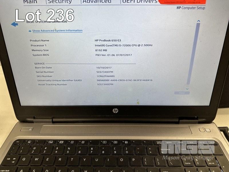 LAPTOP, HP PROBOOK 650 G3, CORE i5 7200U @ 2.5GHz, 8GB RAM, 250GB SSD, WINDOWS 10 PRO INSTALLED, POWER SUPPLY & BAG