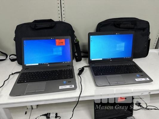 2 x LAPTOPS, HP PROBOOK 450 G1, CORE i5 4200M @ 2.5GHz, 4GB RAM, 500GB SATA HDD, WINDOWS 10 PRO INSTALLED, POWER SUPPLY & BAG